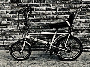 he rode at the back. wheels turning like a ‘45. three gears weren’t enough. the heavy frame of the Chopper didn’t help either. yellow with long slung handlebars and a seat two could fit. he would collect his sister from brownies. her sat behind him as he peddled home. complaints of silver cleaning. there was that one time they had got stopped by the police for riding on the pavement. and for her sat like that. they had got off and walked until the police car was out of sight. then they had enjoyed the speed of the hill. the air through the air. the thrill of doing something risky. the blur of the hedges of houses. the slow stop at the bottom on worn brakes. but now he rode at the back. his friends ahead up the curving hill. cursing the bike as the distance grew. they laughed ahead with calls and the joy of being on an adventure. he wanted to be home. to rest his legs. he wanted a bike like theirs. 10 speed racer with thumb wide frame. large wheels to reduce the need for peddling. he glanced up at the trees that curved down over the road that let in a pattern of light. hints of another world on the road. one of shapes that flicker or gently sway with an occasional dart of black birds. as he reached the big bend, ian was waiting for him. they both gave a knowing smile of best friends and continued together. ian in front, him struggling behind. just as he thought they would be cycling to the heavens, they met the others in a break in the line of trees. a narrow track led into a wood, the path muddy with pools of water. mirrors of a dark canopy. they bumped along. surrounded by the tall netherworld of tree trunks. pine leaf forest of brown and silence. that felt as if they had left the world behind. the world of terraced houses, back garden borders, and too interested neighbours. a world of cars, people and school work. but now they were the four outside the realms of people. the four knights on their stallions, although his was a nag, entering the world of fairies and maidens. until they met a fence. a new wooden fence with a gate. they pushed it open, undeterred and rode on the trail. banks of mud now rearing on either side, topped with small trees and bushes. a turn to the right and they were there. almost hidden but if you knew the secret you could find it. the lake. the lake older than the lady rising with a sword. the lake still with secrets and deep depths. they left their steeds. and sat by the water’s edge. pulling out sandwiches covered in silver foil from their jackets. too happy to say anything. they had reached the fabled prize and were receiving their reward.